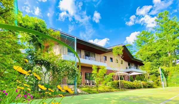 軽井沢の閑静な森の中に佇むホテル。客室は和室・洋室・和洋室が揃った「メインウイング」、全室「塩沢温泉」を使用したプライベート温泉付きの「ノースウイング」、愛犬とともに宿泊できる「ドッグ対応コテージ」の3棟からなります。レストランでは、信州の契約農家から届く鮮度の良い野菜や肉汁たっぷりなグリル料理などを県産のワインとともに味わえます。露天風呂付き大浴場では、浅間山の標高約1,150m付近で湧き出る「小瀬温泉」に浸ることができます。