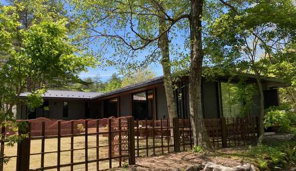 軽井沢の自然に囲まれた、「森に泊まる」をコンセプトにしたヴィラ。敷地内に、軽井沢に植生する植物の名前を付けた全4棟のヴィラが点在しています。淡いピンクがイメージカラーの「ピオニー」や和モダン空間の「ムラサキシキブ」のほか、古民家を改装した趣ある平屋の「ユキノシタ」や、木をモチーフにした「コナラ」を用意。各棟に、開放感のあるリビングやシモンズ製ベッドを配した寝室、調理器具や食器類を揃えたキッチンがあります。一部の客室では、愛犬との滞在も可能。ヴィラまでは、JR「軽井沢駅」より車で約9分、しなの鉄道「中軽井沢駅」より徒歩約11分。周辺には、「湯川ふるさと公園」やスーパー「ツルヤ」があります。