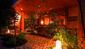 厳かな夷毘沙門が出迎えてくれる旅館。ロビーの能舞台で毎夜催される「紫宸殿の宴」を堪能できます。洞窟風岩風呂や巨岩を配した露天風呂、大浴場を完備。客室は、中庭に面した和室・和洋室、温泉露天風呂付き客室などさまざまです。夕食は地元の旬の食材を使用した会席料理を、朝食は和食または洋食をいただくことができます。目の前に阿智川が流れる雄大な山々に囲まれた自然豊かな場所で、山頂に広がる星空ツアーも楽しめます。JR飯田駅より車で約30分、駅から送迎バスを運行。昼神温泉名物の朝市まで徒歩約2分です。