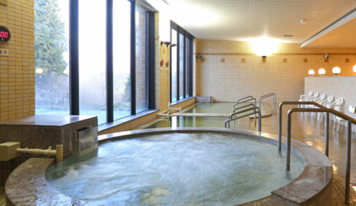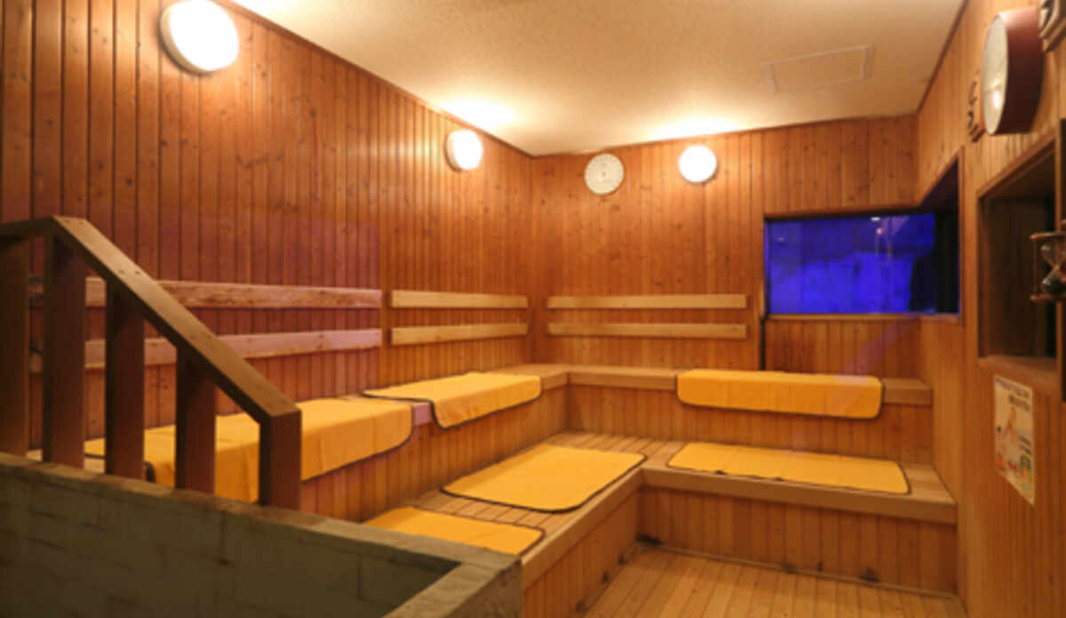 ジャグジー風呂や高温温泉・低温温泉、水風呂がある大浴場。男女ともにテレビが設置されたサウナも併設しています。