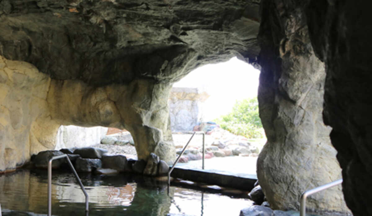 夜になると青色にライトアップされ、幻想的な雰囲気に包まれる「洞窟露天風呂」。日中は太陽の日差しが洞窟の中に入り、静けさとの日差しの中で温泉を満喫することができます。