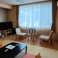 夏休み前の平日、2日前でも予約とれゆーりん館へ。1泊2食、夕飯は和食定食でしたが、若い人ならホテル2階でハンバーグやカレー他、若い人向きメニュー多いフードコーナー利用も可。廊下にアメニティコーナーあり、浴室備え付き以外のシャンプー、リンスも