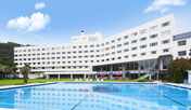 白浜の海岸「多々戸浜」の目の前に建つホテル。すべての客室や温泉施設から壮大な太平洋を見渡すことができます。温泉施設は、山頂露天風呂がある和風大浴場や本物のヨットを改造した「セーリングスパ」がある洋風大浴場、浜辺近くに建つ貸切風呂棟があります。客室は、スタンダードな和室や洋室をはじめ、伊豆石や色とりどりの信楽焼の露天風呂が付いた客室などを用意。夕食は、伊豆の新鮮な山海の幸を使用した料理を、炭火会席や磯会席でいただくことができます。朝食は、干物や野菜のセイロ蒸しがいただける和食です。