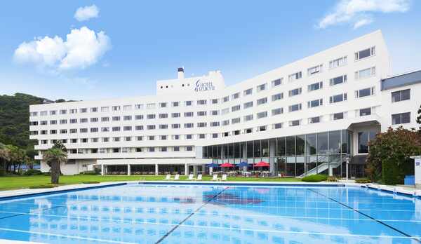 太平洋と白浜海岸を一望する眺望が魅力のリゾートホテル。2種類の温泉を引いており、全国各地の銘石を配置したオーシャンビューの露天風呂と、一面ガラス張りの開放的な大浴場を完備しています。海を望む客室は、和室・洋室・和洋室を用意。ベッドはシモンズ製マットレスを採用しています。夕食は、伊豆の山海の幸を使用した和食会席を、朝食は、豊富な和洋メニューをバイキング形式にていただくことができます。館内には、宴会場や売店、ガーデンプールを併設。JR伊豆急下田駅より車で約7分です。
