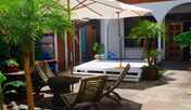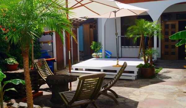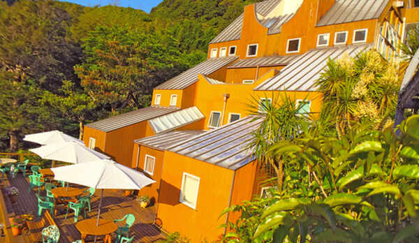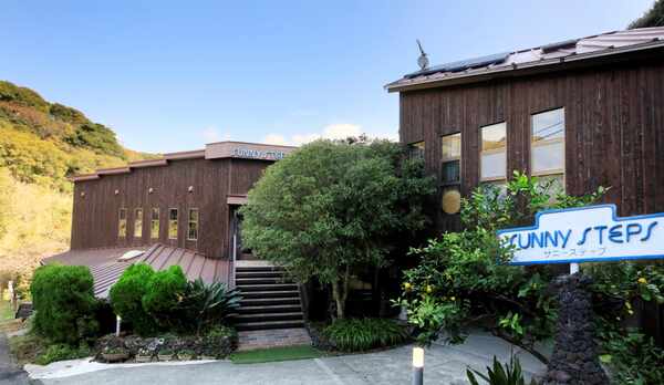 伊豆大島を正面に眺めることができる、白浜海岸にほど近いペンション。季節の花が咲く庭園を散歩したり、豊かな自然に囲まれたテラスで朝食を取ったりと穏やかな時間を過ごすことができます。館内には、一面の緑を眺めながらつかることができる岩風呂を完備。貸し切りでの利用も可能です。客室は、ダブルやツイン、4ベッドルームなどを用意。空と海を望むダイニングでは、旬の魚介類と自家製のハーブ使ったこだわりの料理を味わうことができます。食後には、その日に摘んだハーブを使用したハーブティーをいただけます。