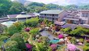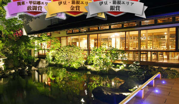 約3,000坪の緑豊かな庭園に囲まれ、季節のうつろう景色を眺めながら過ごすことができる旅館。高台に建つ東屋からは、伝統的な日本建築の本館や数寄屋造りの新館、庭園を一望することができます。全室温泉を引いた客室は、庭園を望む離れや広縁付き和室・和洋室などを用意。開放的な温泉大浴場や露天風呂を完備しています。食事は、駿河湾や相模湾の海の幸や、天城の山の幸を使用した懐石料理をいただくことができます。伊豆箱根鉄道「伊豆長岡駅」より車で約5分、「伊豆パノラマパーク」まで車で約5分です。