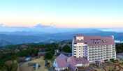 標高約900mの天城高原に佇むホテル。自然に囲まれ、夜には満天の星を見渡すことができます。富士山を望む大浴場では伊豆大川温泉を利用し、サウナも完備しています。夕食は2つのレストランが利用でき、「スワサント」では、フレンチと和食がコラボした和洋折衷のコース料理を、「サンカラント」では、和・洋約40種類のメニューをビュッフェ形式でいただくことができます。客室は、ツインルームや畳スペース付きの和洋室があります。館内には、カラオケルームや卓球ルームを、敷地内には、テニスコートを併設しています。