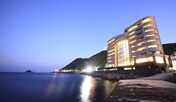 魚が遊泳する水槽を眺める幻想的な雰囲気のお風呂が魅力のホテル。海底約1,000mから湧出する温泉に浸かることができます。太平洋を望む露天風呂やサウナ、水着着用の温泉アミューズメント施設も完備。夕食では、季節の海の幸をふんだんに使用した和食膳やバイキングなどを味わうことができます。海を一望できる客室は、和室やツインルームなどを用意。館内にはゲームセンター・カラオケ・卓球場、敷地内には季節に応じて利用できる屋外プールなどの設備があります。