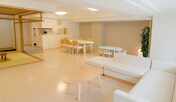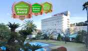 全室30畳以上のリビングを備えた客室が魅力の「ウェルネスの森 伊東 」。キッチンや洗濯機が付いたバス・トイレ別の客室は、広さ120㎡の和洋室を用意。伊東の温泉を引湯した大空を望む露天風呂や広々とした大浴場、温水運動浴プール、ガーデンプールを併設。食事は、伊東の海の幸や旬の食材を使用した和・洋・中メニューをバイキング形式にていただくことができます。JR伊東駅より車で約12分、駅から送迎バスを運行しています。