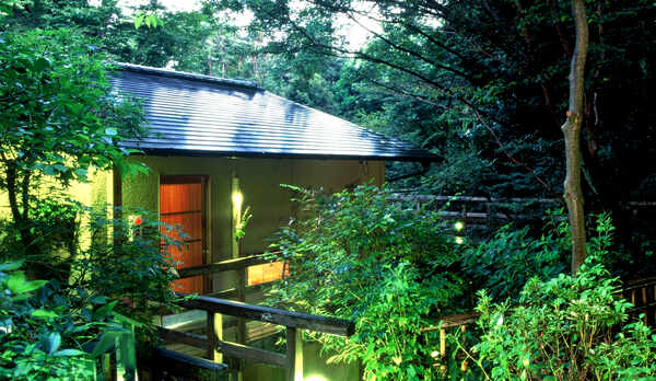 約4,000坪の広大な森の中に佇む温泉旅館。館内には、半露天風呂や檜風呂など、7つの貸切風呂を完備。城ケ崎温泉の湯につかりながら癒やしの時間を過ごせます。客室は、木や畳の温かみが広がる和の空間。8畳二間の和室や談話室を備えたグループ向けの和室などを用意。温泉内風呂付きの客室やベッドを配した客室も揃えています。夕食は、伊豆高原の山の幸や伊豆近海で獲れた海の幸を活かした懐石料理です。朝食は、自家製の一夜干し定食や滋味深いお粥食、パンを味わえる洋食の3種類の中から選べます。敷地内では、季節ごとに表情を変える自然を満喫しながら散策を楽しむことができます。
