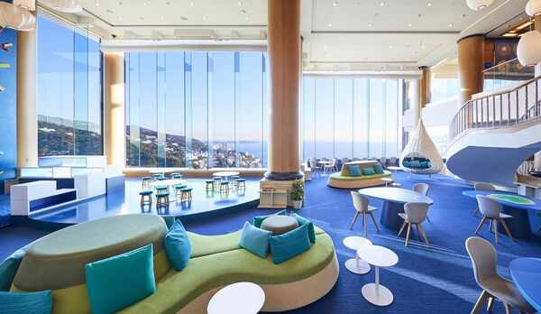 相模湾を一望する高台に建つホテル。ロビーや客室、露天風呂から相模湾の水平線を一望できる景色が自慢です。夕食と朝食は季節によってメニューが変わるバイキング。夕食は、金目鯛をはじめとする伊豆の新鮮な魚介や寿司、揚げたての天ぷらなどを、朝食は、地元の漁師料理である「まご茶漬け」や出来立てのフレンチトーストなどが並びます。客室は、和室と和洋室があり、広さやベッドの数もさまざま。一部を除き、相模灘を望むオーシャンビューです。館内にはマンガコーナーやゲームコーナーなどの娯楽設備も充実しています。