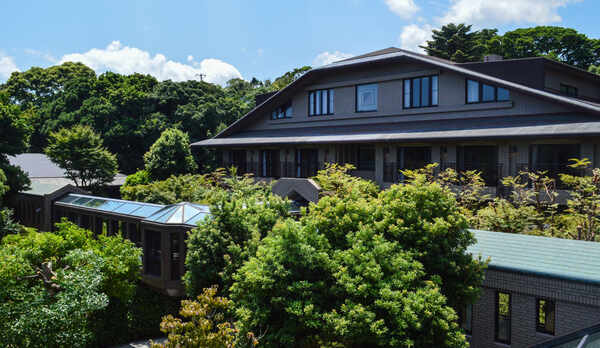 約4,000坪の広大な森の中に佇む温泉旅館。館内には、半露天風呂や檜風呂など、7つの貸切風呂を完備。城ケ崎温泉の湯につかりながら癒やしの時間を過ごせます。客室は、木や畳の温かみが広がる和の空間。8畳二間の和室や談話室を備えたグループ向けの和室などを用意。温泉内風呂付きの客室やベッドを配した客室も揃えています。夕食は、伊豆高原の山の幸や伊豆近海で獲れた海の幸を活かした懐石料理です。朝食は、自家製の一夜干し定食や滋味深いお粥食、パンを味わえる洋食の3種類の中から選べます。敷地内では、季節ごとに表情を変える自然を満喫しながら散策を楽しむことができます。