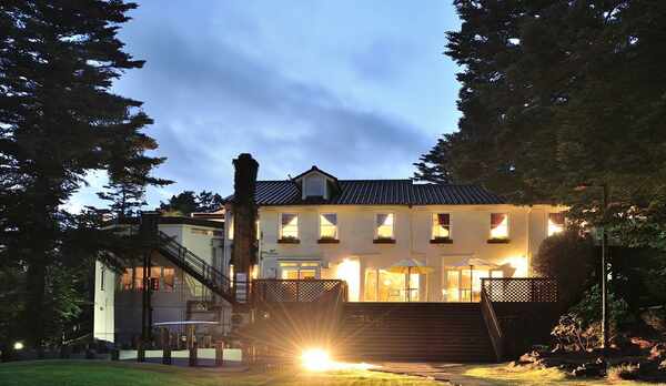 英国の別荘のような佇まいが特徴の、ペットと過ごせる宿泊施設。全室に温泉露天風呂を完備した客室は、欧州から輸入したアンティーク家具や調度品を設えたクラシカルな雰囲気。窓の向こうに海を望む客室や檜造りの内風呂を備えた客室を揃えた「本館」と、ドッグラン付き客室やキャットタワーを設置した客室などがある「別館」を用意しています。夕食は、新鮮な地元食材を使用した創作コース料理です。朝食は、客室にて、ホットサンドイッチや卵料理などをいただくことができます。宿泊施設までは、伊豆急「伊豆高原駅」より車で約5分。周辺には「伊豆ぐらんぱる公園」や「伊豆シャボテン公園」があり、観光にも便利なロケーションです。