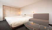 スタンダードルームは25㎡程度なので決して広いとはいえないです。バスタブもなくシャワーのみですが、温泉大浴場を利用すれば問題ないでしょう。大浴場は23時まで、時間になると連絡通路が施錠されるため、時間に余裕をもって利用するのが良さそうです。