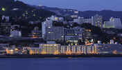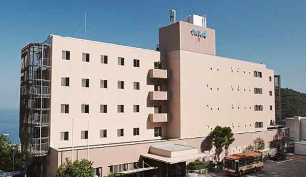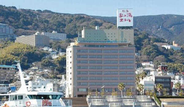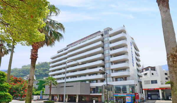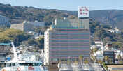 豪華客船を思わせる外観が特徴で、初島や大島を眺めながら過ごすことができるホテル。全室南向きの客室は、温泉を引いたツインと和洋室を用意。館内には、温泉大浴場を完備しています。夕食は、金目鯛や釜揚げしらすなどの海の幸を使用した御膳料理などを、朝食は和定食またはバイキングをいただくことができます。JR熱海駅より徒歩約10分です。