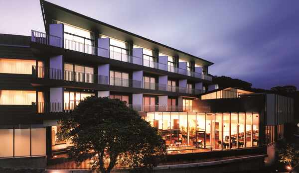 旬の食材を使用し、演出や彩りにもこだわった創作和食会席をいただくことができる和モダンオーベルジュ。さまざまな野菜を使用した彩り豊かな前菜から始まり、近海の魚や国産牛を使用した料理、デザートから炎が立ち上がる演出など、五感で食事を楽しむことができます。チェックイン後、食事までの時間はレストランにてドリンクや前菜を自由にいただけるウェルカムサービスも魅力です。遠くに相模湾を望む露天風呂付きの温泉大浴場や岩盤浴を併設。客室は、和室・洋室・和洋室のほか、露天風呂付きの客室も用意しています。