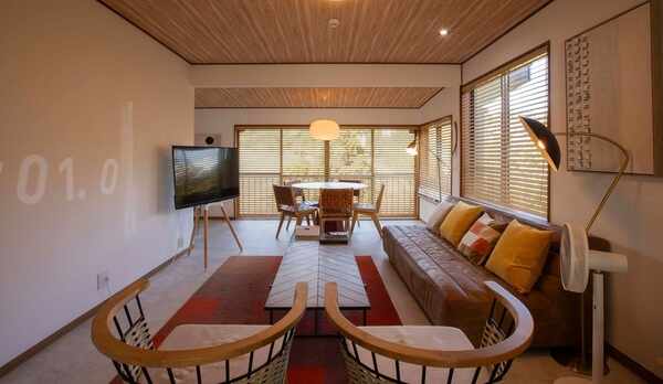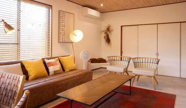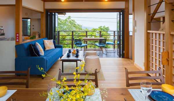 JR「熱海駅」より徒歩約10分、観光地や飲食店が徒歩圏内に点在している、過ごしやすいリゾート地にある宿です。約70㎡の広々とした客室は、和室と洋室が備わっており、大人数でも快適に滞在することができます。また、全客室に24時間温泉を楽しむことができる、檜造りの浴槽を完備。窓の向こうの海を眺めながら、遠くから聞こえる波の音を聞き、ゆったりと入浴することができます。客室設備やアメニティーも充実しています。館内には、陽の光が射しこむ開放的な会員ラウンジも備わっており、飲み物を飲んだり、読書をして自由にくつろぐことができ癒しのひとときを過ごすことができます。
