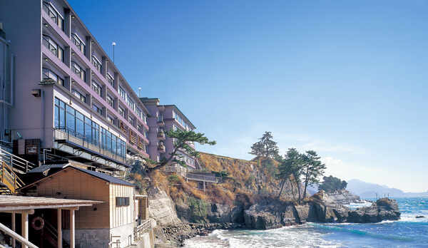 駿河湾と三四郎島を目の前に望むリゾートホテル。晴れた日には海を照らす美しい夕陽と島のコントラストが織りなす景色を露天風呂から一望することができます。館内には、ステンドグラスを通した自然光が幻想的な大浴場、プライベートな貸切岩風呂なども完備。食事では、西伊豆の旬の魚介類をふんだんに使用した海鮮会席料理や金目鯛の姿煮などを味わうことができます。客室は、海に面した和室や露天風呂付き客室などを用意。客室の風呂は全室温泉を引いています。目の前の瀬浜海岸では、潮汐によって三四郎島へと続く道が現れることも。