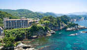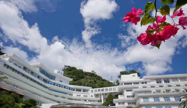 駿河湾の起伏に富んだ、緑豊かな海岸線を一望できる「堂ヶ島ニュー銀水」。展望露天風呂からは刻々と表情を変える大海原を見渡しながら、優雅に過ごすことができます。客室は全室オーシャンフロントで、大きな窓いっぱいに堂ヶ島の美しい四季折々の景色が広がります。朝食は種類豊富な料理が並ぶバイキング形式でいただけますが、なかでも香り高い焼きたてのクロワッサンや手の込んだパンプキンスープが魅力的。夕食は伊豆山海の幸を堪能できます。屋内外プールや敷地内ビーチ、エステサロンなどの施設も充実しています。