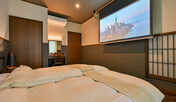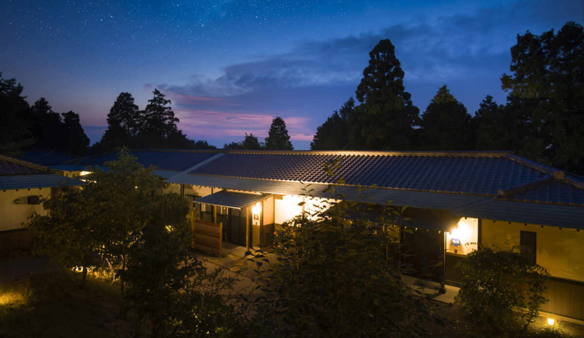 自然の息吹を感じる森の中にひっそりと佇む、わずか10室の旅館。露天風呂付きの客室は、和室とダイニングを備えた客室、風情ある囲炉裏付きの客室やメゾネットタイプの客室などさまざまです。寝室でホームシアターを楽しめる客室も。夕食は、目の前で揚げる天ぷらをはじめ、山海の幸を使用した季節の会席料理です。朝食は、和食または洋食から選ぶことができます。図書館コーナーには、小説や図鑑、写真集などの本を取り揃えています。