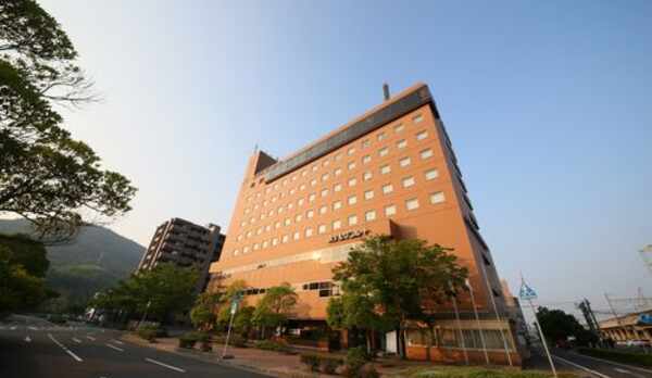 JR丸亀駅より徒歩約5分、「丸亀城」にほど近い立地のホテル。水色のレトロな雰囲気の建物です。フロントやロビーは和風で落ち着いた雰囲気です。客室は、セミダブルベッドを配したシングル、ツインやトリプルのほか、6畳の和室などを用意。バス・トイレが独立した客室も揃えています。全室でWi-Fiを利用することができます。朝食は、和食料理人が手掛けた日替わりの和定食をいただくことができます。館内には、会議室や長期滞在にも便利なランドリールームを完備。「中津万象園」まで車で約5分、「父母ヶ浜」まで車で約30分です。