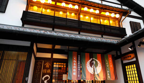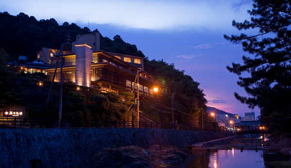 「金刀比羅宮」の表参道沿いに佇む旅館。「旧敷島館」の古材を使用し再現した建物は、歴史的景観を守りながらも心地よい空間です。温泉は露天風呂や趣の異なる4つの貸切風呂が用意されています。温泉に浸かった後は、湯上り処で中庭を眺めながら寛げるのも魅力。夕食は瀬戸内海の魚介類や地元の農産物などを使用した季節の会席料理、朝食は讃岐うどんなどもいただける和定食です。木の温もりあふれる和モダンな雰囲気の客室は、ツインやトリプル、フォースなどの客室や和洋室を用意。琴平の街並みを望むテラスや露天風呂付きの客室もあります。