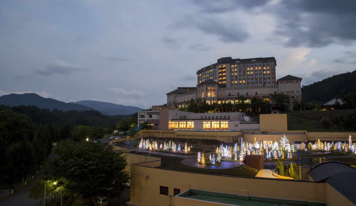 四季折々の花々や、約33万級の華やかなイルミネーションを眺められるホテル。露天風呂からは、雫石盆地や岩手山、奥羽山脈などの雄大な景色を一望できます。和の情緒漂う和風大浴場や、ヨーロッパの宮殿をイメージした洋風大浴場も併設。趣の異なる3種類の貸切風呂も完備しています。夕食は、岩手の旬の食材を使用した炉端会席や和食膳などを揃えています。客室は、和室・和洋室・洋室を用意。庭園に囲まれた離れや、露天風呂付きの客室なども。昔懐かしい縁日のような出店が並ぶお祭り広場では、民謡などのイベントが楽しめます。