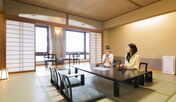 ツアー最後のホテルとして1泊しました。お部屋は和室にローベッドで膝に優しかったです。大浴場の露天からは大パノラマがひろがり、夜は満天の星。食事は密でない広々とした空間で、創作和食でした。夜も朝も美味しかったです。