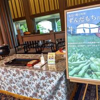 ウェルカムスイーツのずんだ餅やフラワーガーデンなどいい感じのホテルです、夕食や朝食も会席形式で食事内容も申し分なし。 部屋も広く、温泉につかった後まったりできました、できれば長期滞在のホテルにしたいです。