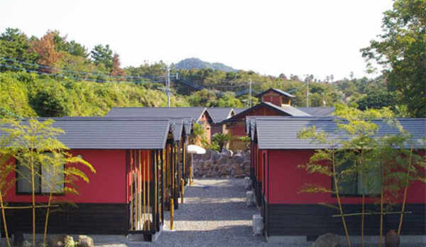 指宿市山川の緑豊かで静寂な地に、全戸離れのコテージが並ぶ「田舎や」。敷地内には1~4名利用、4~6名利用のコテージが複数あり、室内は古民具で装飾された趣のある空間。利便性は決して高くないこの場所だからこそ、出会える魅力が詰まっています。夜になると無数の星が輝き、日中は木・竹・泥にふれ自然と戯れることができます。共同炊事場や家族風呂といった設備もあり、ペットと一緒に泊まれるコテージも。周辺には「たまて箱温泉」、「長崎鼻」、「道の駅山川港活お海道」など観光スポットが多数あります。