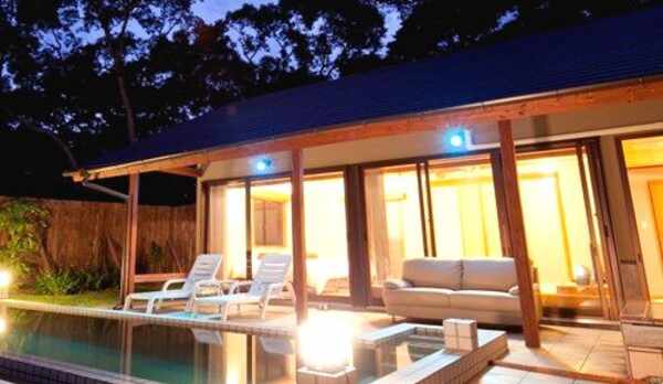 バリ島を連想させるような佇まい。 離れのヴィラには指宿温泉掛け流しの露天風呂とプライベートな温泉水プールがあり、滞在中気兼ねなく楽しめる。 自然の中に溶け込むように、野鳥のさえずりやカジカガエルの鳴き声が聞こえて、世間の喧騒を離れるにはぴったりの宿。 食事も趣向を凝らしてあり、見た目も楽しく美味しい! スタッフの対応もとても良かった。
