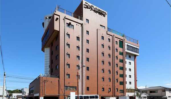 JR日南線志布志駅より徒歩約2分のホテル。飲食店が立ち並ぶ「志布志銀座街」まで徒歩約5分の立地です。客室は、シングルやツインなどを用意。全室に約140cm幅のシモンズ製ベッドを採用しています。朝食は、志布志の新鮮な海の幸・山の幸を使用したメニューをビュッフェ形式でいただくことができます。館内には、電子レンジや長期滞在に便利なランドリールームを完備。大阪・志布志間を結ぶ「フェリーさんふらわあ」ターミナルまで車で約5分です。