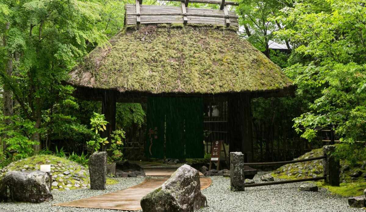 静寂な山間にひっそりと佇む、1室2名限定の旅館。都会の喧騒から離れて、川のせせらぎに包まれる空間で心安らぐひとときを過ごすことができます。全室に温泉半露天風呂を完備した客室は、和室や和洋室、洋室ツインなどを用意。目の前に広がる緑豊かな景色を眺めながら温泉を堪能することができます。館内には、野趣あふれる野天風呂や岩に囲まれた穴湯を併設。食事は、オープンキッチン「むぎの香」にて、旬の食材を使用した季節の料理を味わうことができます。敷地内には、茅葺き屋根と大きな梁が特徴のバーがあります。