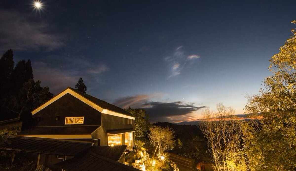 黒川の閑静な森に佇む温泉旅館。敷地内の山頂に貸切露天風呂を併設。阿蘇の外輪山や小国の山々、夜空に輝く月や星を眺めながら、黒川温泉の湯に浸かることができます。全室に内風呂や露天風呂を完備した客室は、趣の異なる全8棟の離れを用意。重厚感のある梁が目を引く客室や、囲炉裏を配した客室、洞窟風露天風呂付きの客室などを揃えています。室内は、木の温もりを感じる和モダンな空間。窓から四季折々の黒川の景色を眺めながらぜいたくな時間を過ごせます。夕食は、肥後牛や竹崎蟹など、九州の自慢の食材を活かした会席料理です。朝食は、炊き立ての熊本県産白米や干物の炭火焼きなどを味わえます。