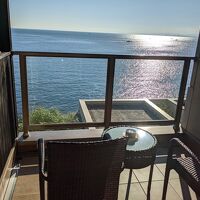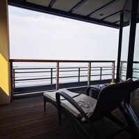 海正面のホテルです。1Fのテラスは夜はバーに、朝はコーヒー(無料でした)がいただけます。コンセプトの違う棟がいくつかあるタイプなので、予約時には写真でチェックをすすめます。広いので棟によっては遠かったりするのでお年を召した方がいらっしゃったら棟の選択時、考慮した方がいいかもです。