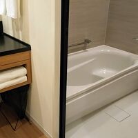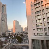 JR桜木町駅の新南口を出てすぐです。ランドマークタワーが見えるシングルの部屋に泊まりました。部屋はL字に折れ曲がっていて使いにくそうでしたが、バスタブとシャワーを分けて配置したためとわかって納得しました。朝食は野菜が多くて満足できました。