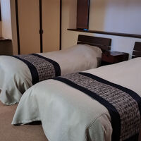 伊豆高原の別荘地にある1日6組の小さなお宿です。 当日は私たちを含めて3組が宿泊しました。 私たち夫婦は、ツインのベッドのお部屋を希望。 道(あゆみ)のお部屋です。 ベッドは日本製のフランスベッドです。 お部屋にヒノキの温泉があり