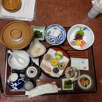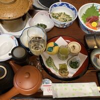 古い建物ですが、中はリフォームされていてとてもきれいです。ご飯は春の時期だったので山菜を使った品がたくさんあり、写真以外にもステーキや焼き魚、炊き込みご飯、手作りのガトーショコラなど盛りだくさんでした。お部屋でゆっくりいただけるのもいいです