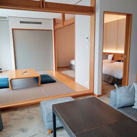 娘夫婦が日頃世話になっているお礼にと、1泊招待してくれました。 当日は満室だったようですが他の人の気配をあまり感じることなく、ゆっくりと静かに過ごせました。 大浴場は1ヶ所工事中だったので、朝夕,男女入れ替え制でしたが・・ 部屋のお風呂が温泉で、サッと入られたのは良かったと思います。 またお食事を個室でいただき、女性スタッフの方が子供に笑顔で接してくれたのはイイ思い出に残りました。 お料理も品数多く、とても満足した内容でした。